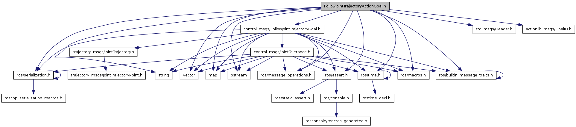 #include <string>#include <vector>#include <map>#include <ostream>#include "ros/serialization.h"#include "ros/builtin_message_traits.h"#include "ros/message_operations.h"#include "ros/time.h"#include "ros/macros.h"#include "ros/assert.h"#include "std_msgs/Header.h"#include "actionlib_msgs/GoalID.h"#include "control_msgs/FollowJointTrajectoryGoal.h"