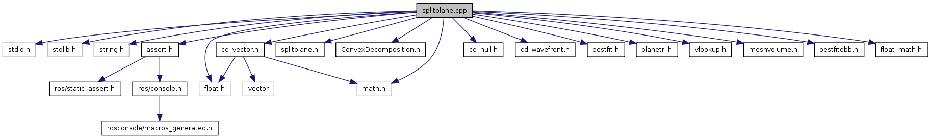 #include <stdio.h>#include <stdlib.h>#include <string.h>#include <assert.h>#include <float.h>#include <math.h>#include "splitplane.h"#include "ConvexDecomposition.h"#include "cd_vector.h"#include "cd_hull.h"#include "cd_wavefront.h"#include "bestfit.h"#include "planetri.h"#include "vlookup.h"#include "meshvolume.h"#include "bestfitobb.h"#include "float_math.h"