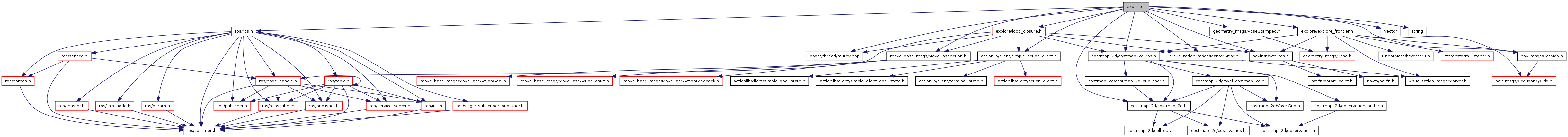 #include <ros/ros.h>#include <move_base_msgs/MoveBaseAction.h>#include <actionlib/client/simple_action_client.h>#include <geometry_msgs/PoseStamped.h>#include <nav_msgs/GetMap.h>#include <costmap_2d/costmap_2d_ros.h>#include <costmap_2d/costmap_2d.h>#include <navfn/navfn_ros.h>#include <explore/explore_frontier.h>#include <explore/loop_closure.h>#include <visualization_msgs/MarkerArray.h>#include <vector>#include <string>#include <boost/thread/mutex.hpp>