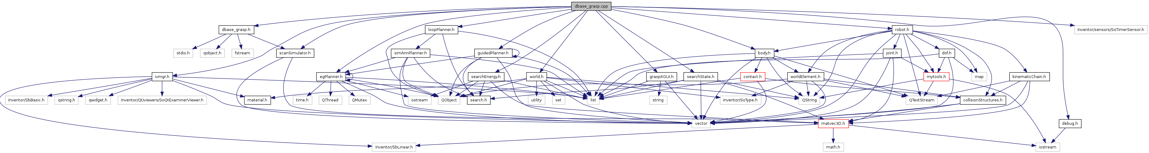 #include "dbase_grasp.h"#include "ivmgr.h"#include "graspitGUI.h"#include "world.h"#include "searchState.h"#include "egPlanner.h"#include "guidedPlanner.h"#include "body.h"#include "robot.h"#include "searchEnergy.h"#include "loopPlanner.h"#include "scanSimulator.h"#include "debug.h"#include <Inventor/sensors/SoTimerSensor.h>