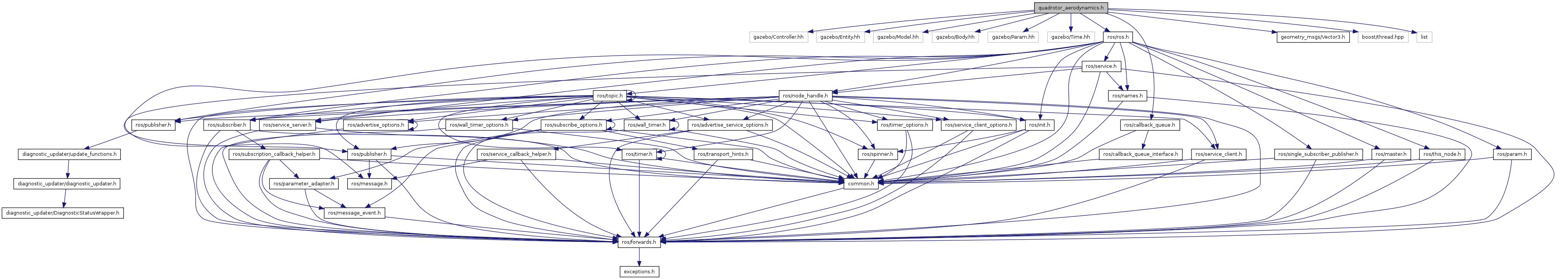 Include dependency graph for quadrotor_aerodynamics.h: