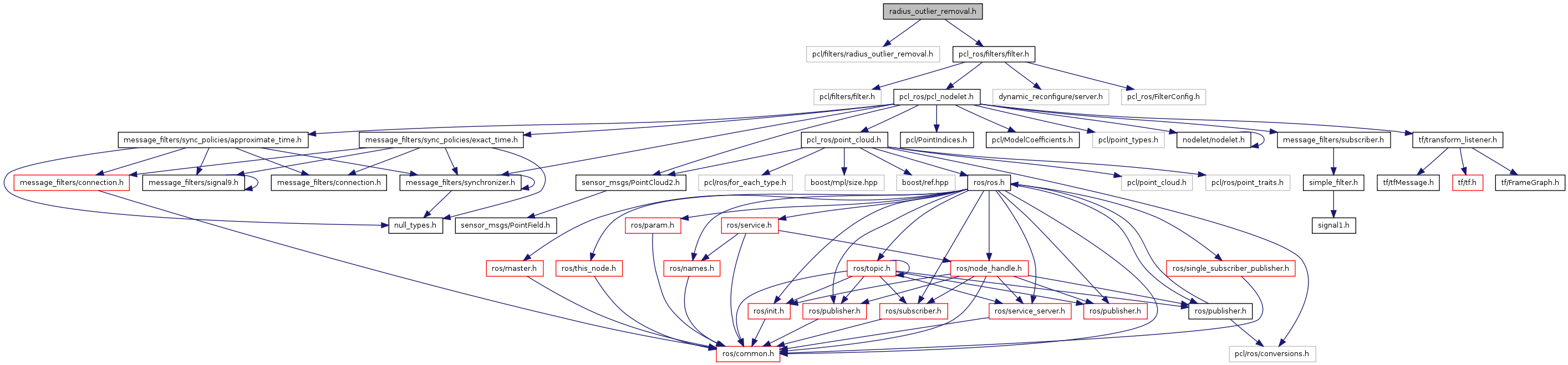 #include <pcl/filters/radius_outlier_removal.h>#include "pcl_ros/filters/filter.h"