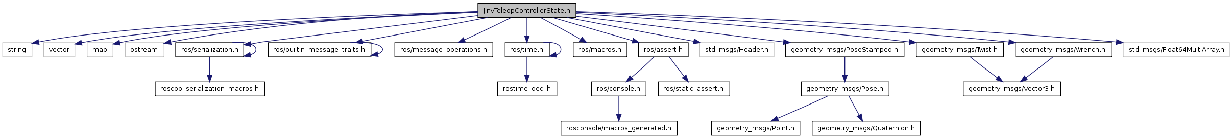 #include <string>#include <vector>#include <map>#include <ostream>#include "ros/serialization.h"#include "ros/builtin_message_traits.h"#include "ros/message_operations.h"#include "ros/time.h"#include "ros/macros.h"#include "ros/assert.h"#include "std_msgs/Header.h"#include "geometry_msgs/PoseStamped.h"#include "geometry_msgs/Twist.h"#include "geometry_msgs/Wrench.h"#include "std_msgs/Float64MultiArray.h"
