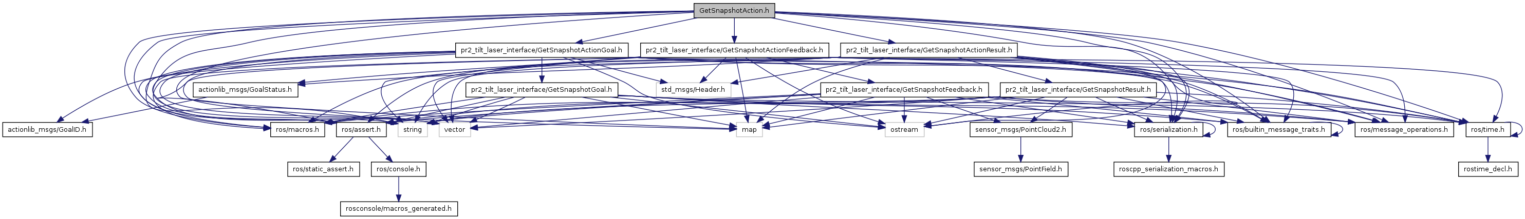 #include <string>#include <vector>#include <map>#include <ostream>#include "ros/serialization.h"#include "ros/builtin_message_traits.h"#include "ros/message_operations.h"#include "ros/time.h"#include "ros/macros.h"#include "ros/assert.h"#include "pr2_tilt_laser_interface/GetSnapshotActionGoal.h"#include "pr2_tilt_laser_interface/GetSnapshotActionResult.h"#include "pr2_tilt_laser_interface/GetSnapshotActionFeedback.h"