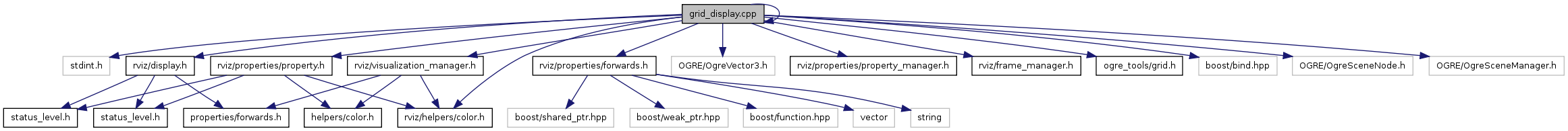 #include <stdint.h>#include "grid_display.h"#include "rviz/display.h"#include "rviz/helpers/color.h"#include "rviz/properties/forwards.h"#include <OGRE/OgreVector3.h>#include "rviz/visualization_manager.h"#include "rviz/properties/property.h"#include "rviz/properties/property_manager.h"#include "rviz/frame_manager.h"#include "ogre_tools/grid.h"#include <boost/bind.hpp>#include <OGRE/OgreSceneNode.h>#include <OGRE/OgreSceneManager.h>