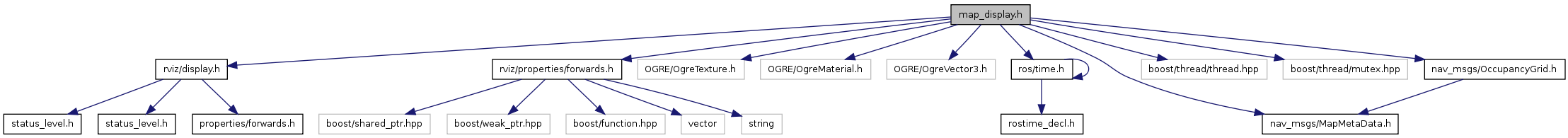 #include "rviz/display.h"#include "rviz/properties/forwards.h"#include <OGRE/OgreTexture.h>#include <OGRE/OgreMaterial.h>#include <OGRE/OgreVector3.h>#include <nav_msgs/MapMetaData.h>#include <ros/time.h>#include <boost/thread/thread.hpp>#include <boost/thread/mutex.hpp>#include <nav_msgs/OccupancyGrid.h>