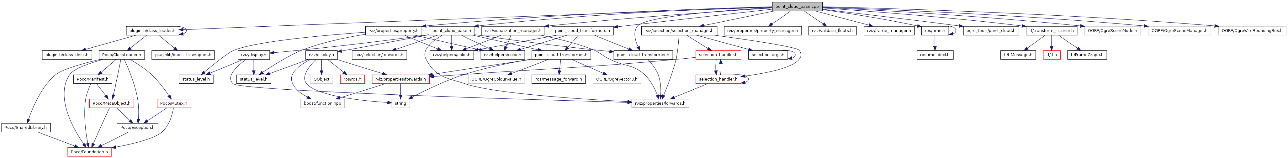 #include <pluginlib/class_loader.h>#include "point_cloud_base.h"#include "point_cloud_transformer.h"#include "point_cloud_transformers.h"#include "rviz/visualization_manager.h"#include "rviz/selection/selection_manager.h"#include "rviz/properties/property.h"#include "rviz/properties/property_manager.h"#include "rviz/validate_floats.h"#include "rviz/frame_manager.h"#include <ros/time.h>#include "ogre_tools/point_cloud.h"#include <tf/transform_listener.h>#include <OGRE/OgreSceneNode.h>#include <OGRE/OgreSceneManager.h>#include <OGRE/OgreWireBoundingBox.h>