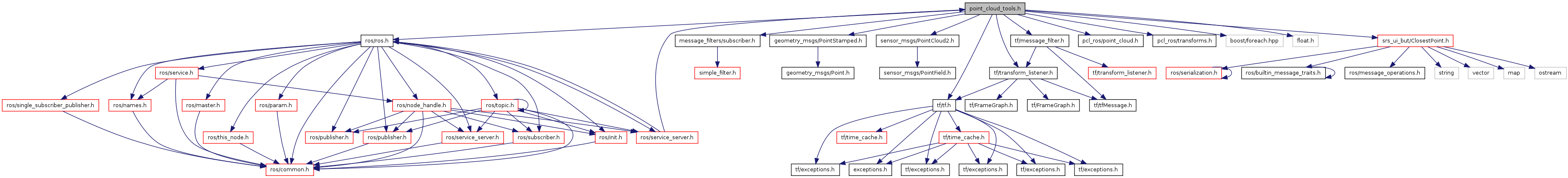 #include <ros/ros.h>#include <message_filters/subscriber.h>#include <geometry_msgs/PointStamped.h>#include <sensor_msgs/PointCloud2.h>#include <tf/tf.h>#include <tf/transform_listener.h>#include <tf/message_filter.h>#include <pcl_ros/point_cloud.h>#include <pcl_ros/transforms.h>#include <boost/foreach.hpp>#include <float.h>#include <srs_ui_but/ClosestPoint.h>