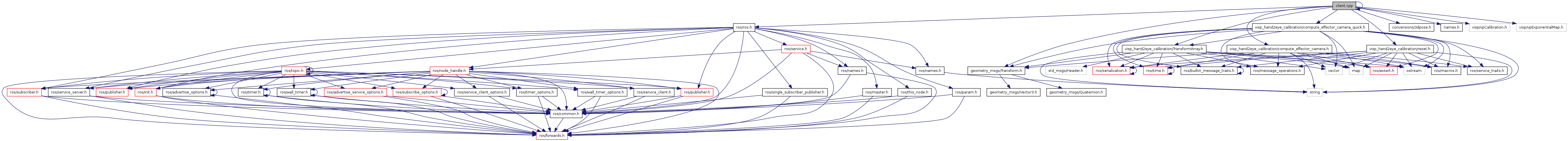 #include "client.h"#include "ros/ros.h"#include "geometry_msgs/Transform.h"#include "visp_hand2eye_calibration/compute_effector_camera.h"#include "visp_hand2eye_calibration/compute_effector_camera_quick.h"#include "visp_hand2eye_calibration/reset.h"#include "visp_hand2eye_calibration/TransformArray.h"#include "conversions/3dpose.h"#include "names.h"#include "visp/vpCalibration.h"#include "visp/vpExponentialMap.h"