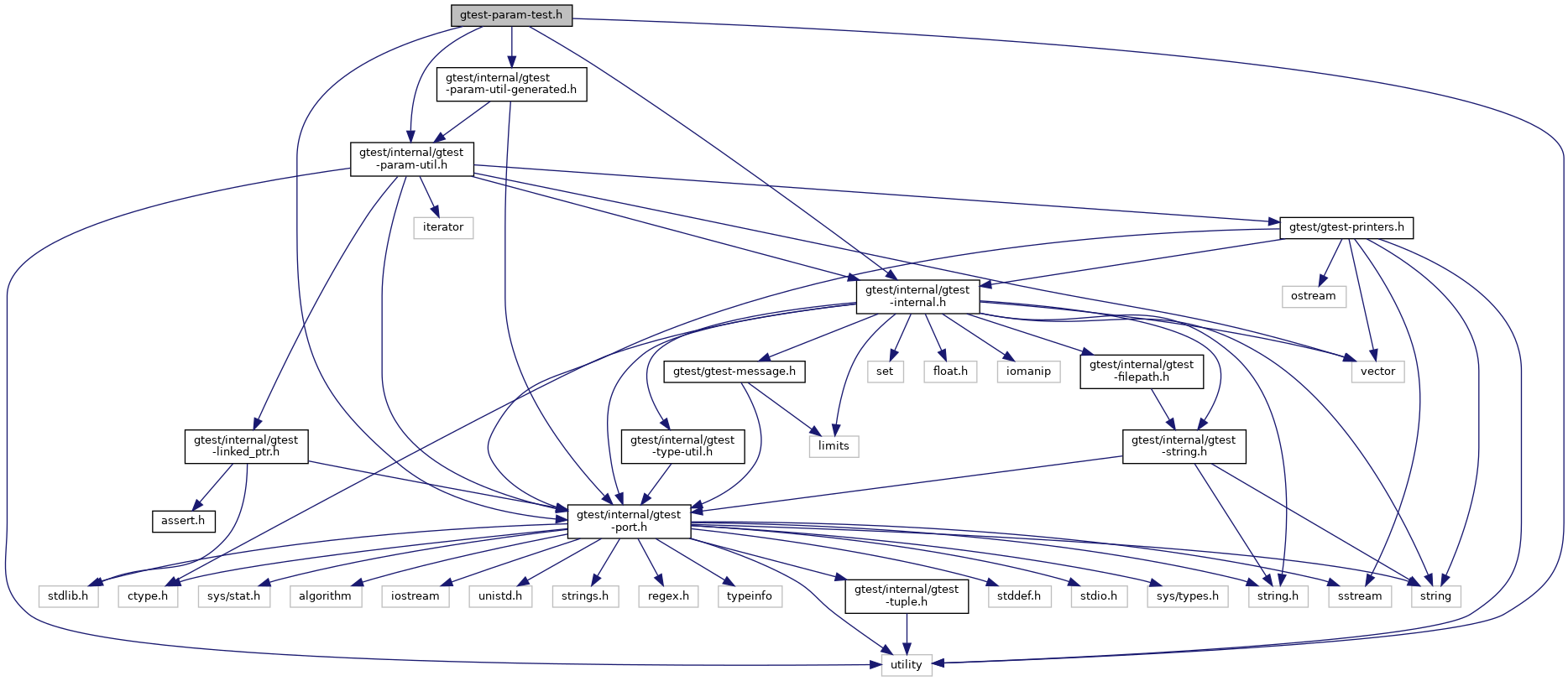 Include dependency graph for gtest-param-test.h: