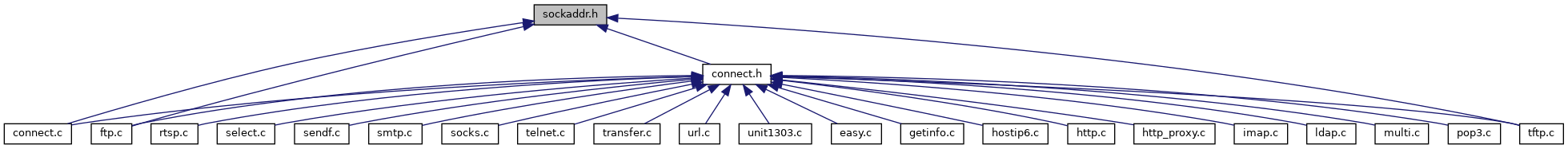 Include dependency graph for sockaddr.h: