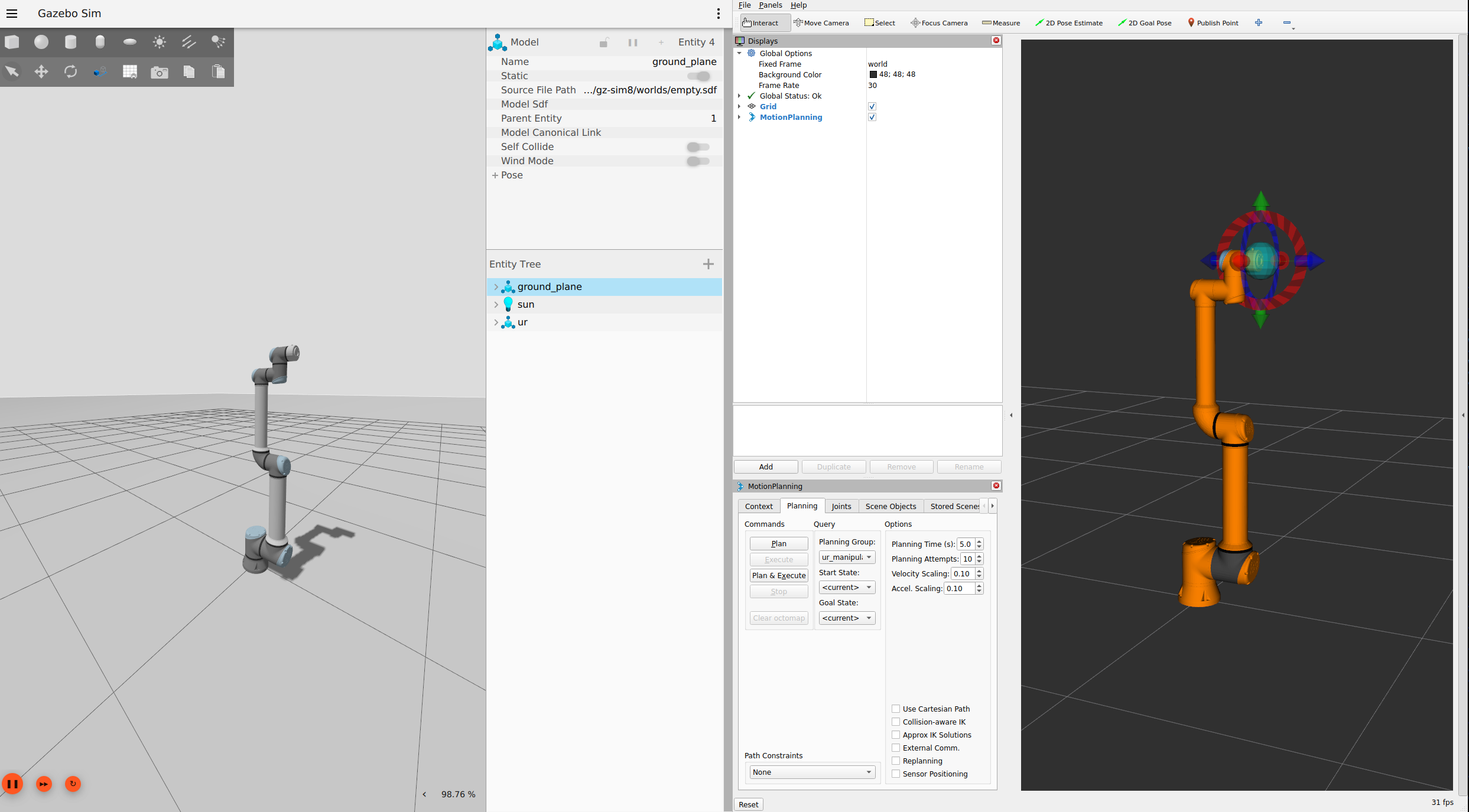 $ ros2 launch ur_simulation_gz ur_sim_moveit.launch.py ur_type:=ur10e