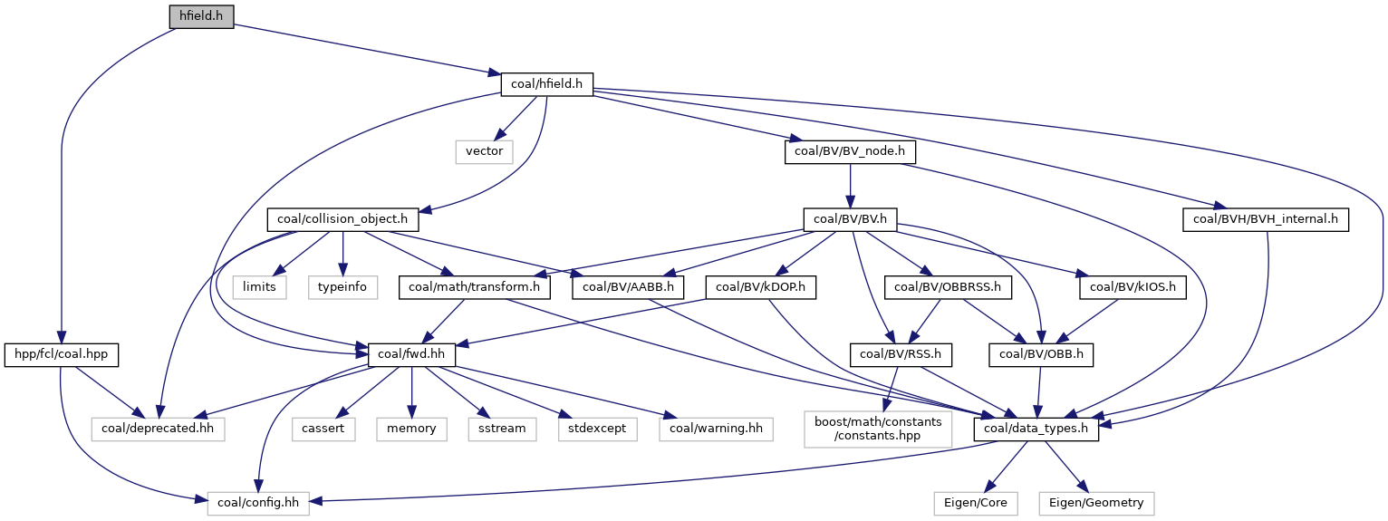 Include dependency graph for hpp/fcl/hfield.h: