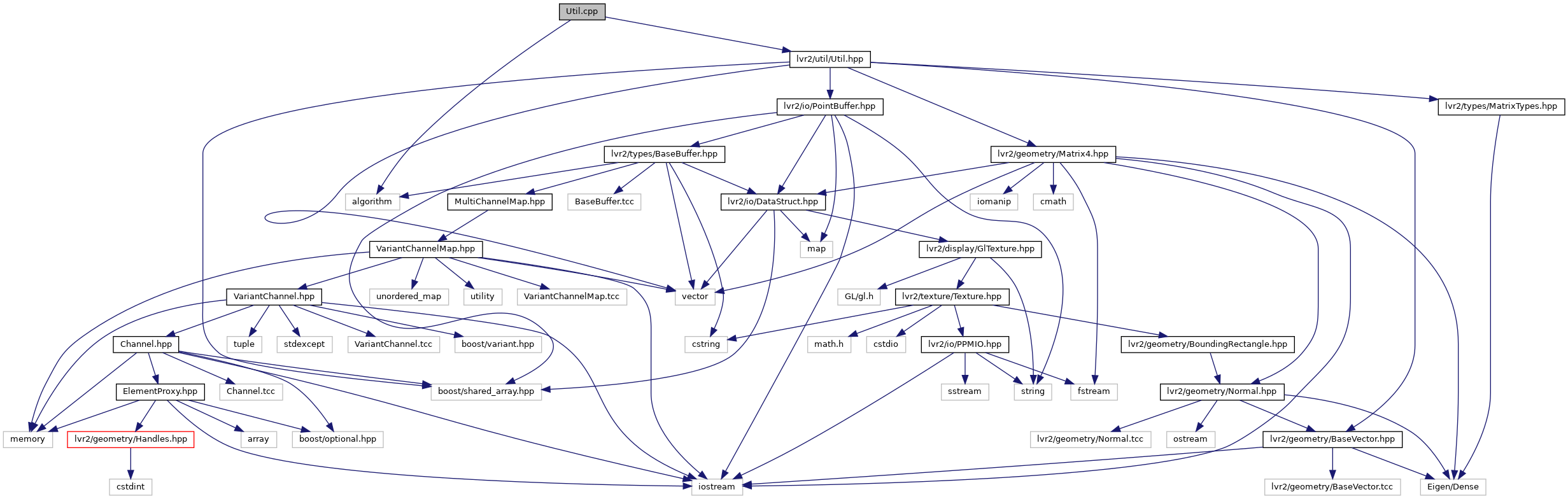 Include dependency graph for Util.cpp: