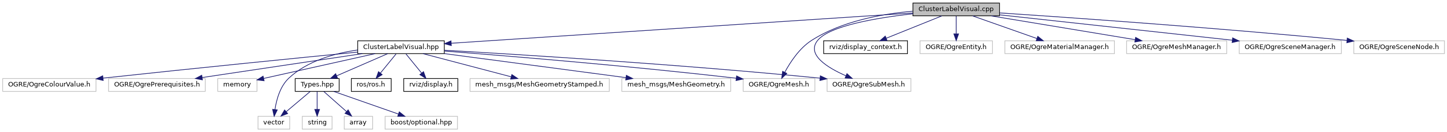 #include <ClusterLabelVisual.hpp>#include <rviz/display_context.h>#include <OGRE/OgreEntity.h>#include <OGRE/OgreMaterialManager.h>#include <OGRE/OgreMesh.h>#include <OGRE/OgreMeshManager.h>#include <OGRE/OgreSceneManager.h>#include <OGRE/OgreSceneNode.h>#include <OGRE/OgreSubMesh.h>