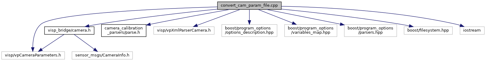 command line tool to convert a ViSP camera parameter file to a INI/YAML file compatible with ROS drivers More...