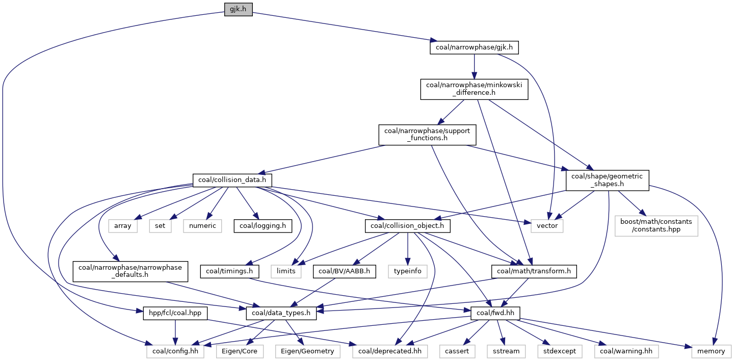 Include dependency graph for hpp/fcl/narrowphase/gjk.h:
