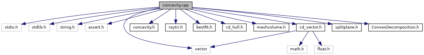 #include <stdio.h>#include <stdlib.h>#include <string.h>#include <assert.h>#include <vector>#include "concavity.h"#include "raytri.h"#include "bestfit.h"#include "cd_hull.h"#include "meshvolume.h"#include "cd_vector.h"#include "splitplane.h"#include "ConvexDecomposition.h"