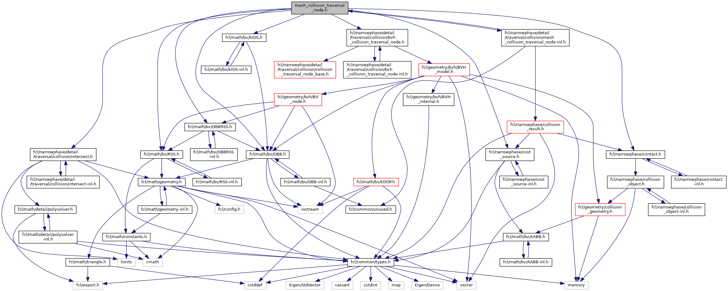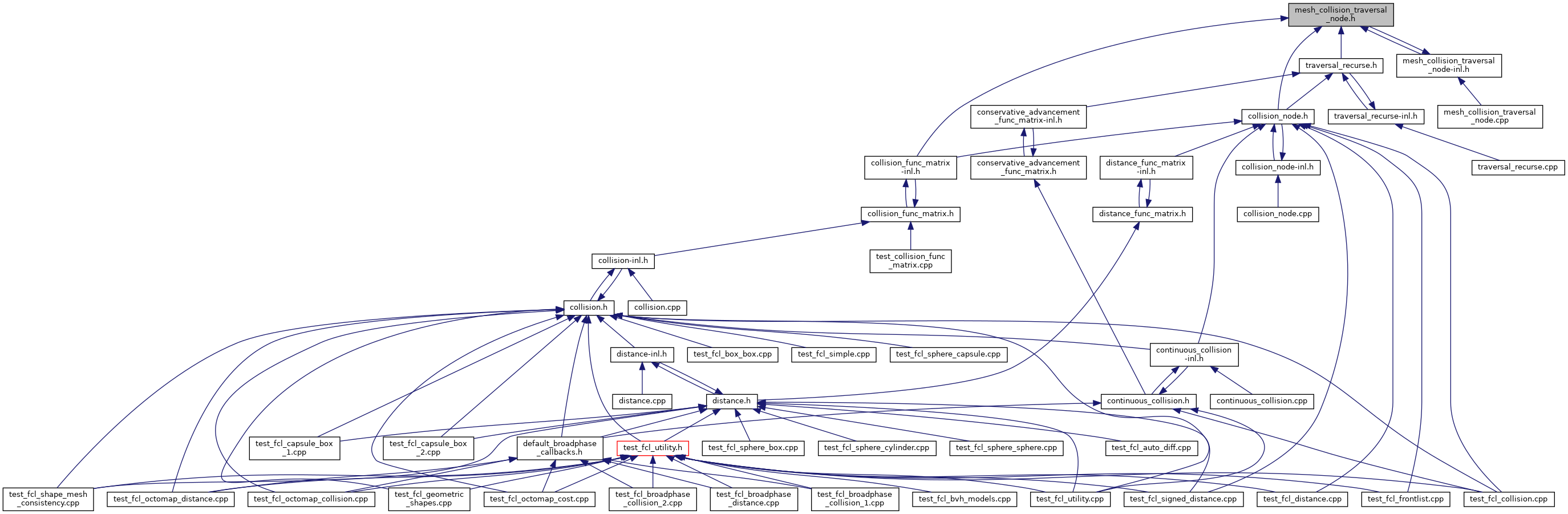 FCL_EXPORT void | fcl::detail::meshCollisionOrientedNodeLeafTesting (int b1, int b2, const BVHModel< BV > *model1, const BVHModel< BV > *model2, Vector3< typename BV::S > *vertices1, Vector3< typename BV::S > *vertices2, Triangle *tri_indices1, Triangle *tri_indices2, const Matrix3< typename BV::S > &R, const Vector3< typename BV::S > &T, const Transform3< typename BV::S > &tf1, const Transform3< typename BV::S > &tf2, bool enable_statistics, typename BV::S cost_density, int &num_leaf_tests, const CollisionRequest< typename BV::S > &request, CollisionResult< typename BV::S > &result) |