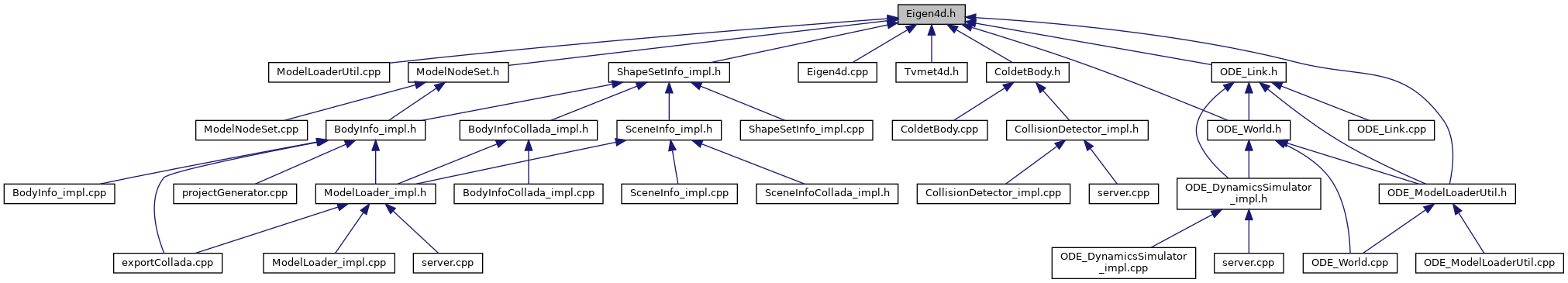 Include dependency graph for Eigen4d.h: