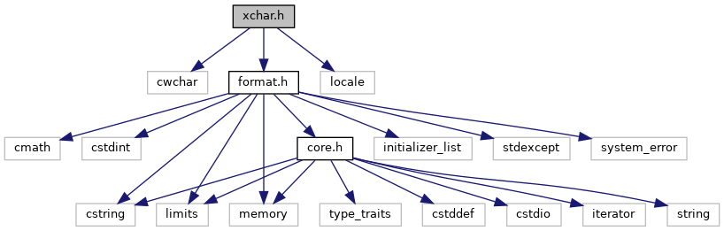 Include dependency graph for xchar.h: