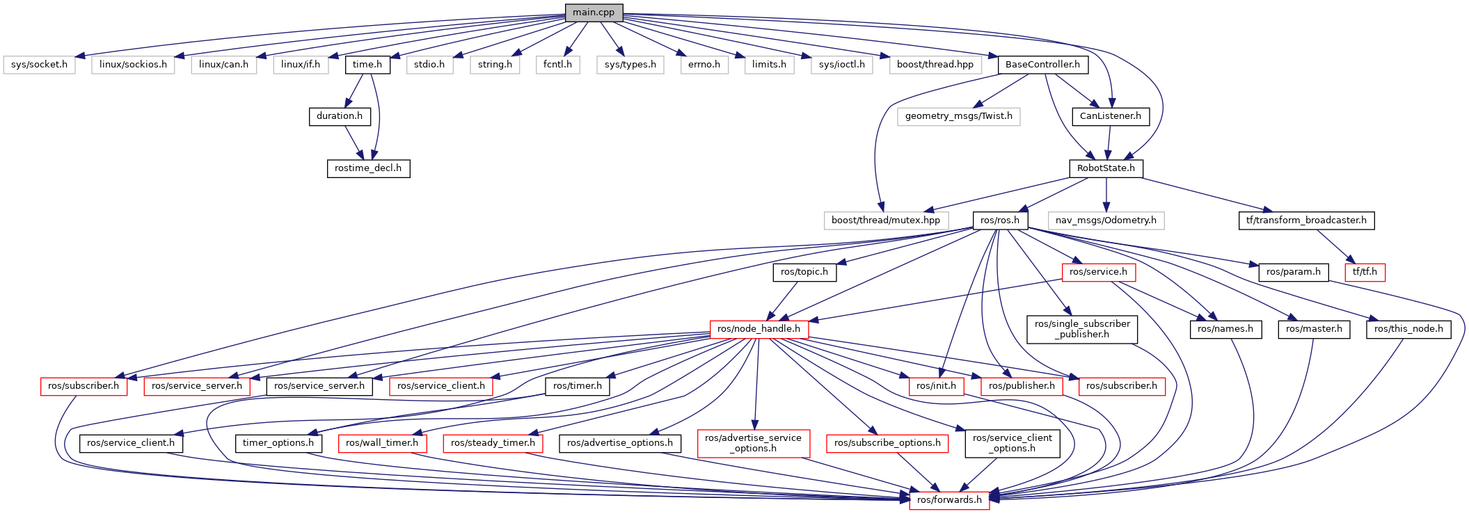 #include <sys/socket.h>#include <linux/sockios.h>#include <linux/can.h>#include <linux/if.h>#include <time.h>#include <stdio.h>#include <string.h>#include <fcntl.h>#include <sys/types.h>#include <errno.h>#include <limits.h>#include <sys/ioctl.h>#include <boost/thread.hpp>#include "CanListener.h"#include "BaseController.h"#include "RobotState.h"