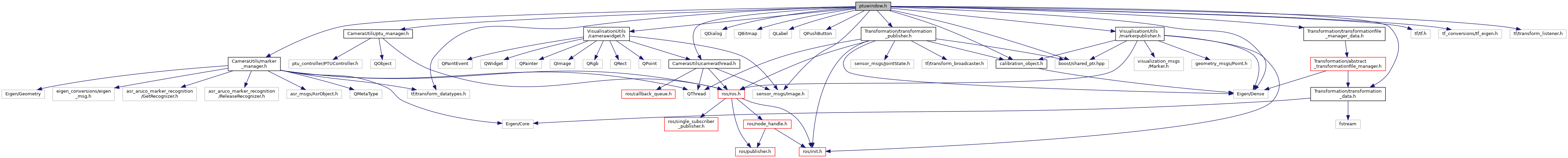#include "CameraUtils/ptu_manager.h"#include "CameraUtils/marker_manager.h"#include "CameraUtils/camerathread.h"#include <QDialog>#include <QBitmap>#include <QLabel>#include <QPushButton>#include "calibration_object.h"#include "VisualisationUtils/camerawidget.h"#include "VisualisationUtils/markerpublisher.h"#include <Transformation/transformation_data.h>#include <Transformation/transformation_publisher.h>#include <Transformation/transformationfile_manager_data.h>#include <sensor_msgs/Image.h>#include <Eigen/Dense>#include <boost/shared_ptr.hpp>#include <tf/tf.h>#include <tf_conversions/tf_eigen.h>#include <tf/transform_datatypes.h>#include <tf/transform_listener.h>