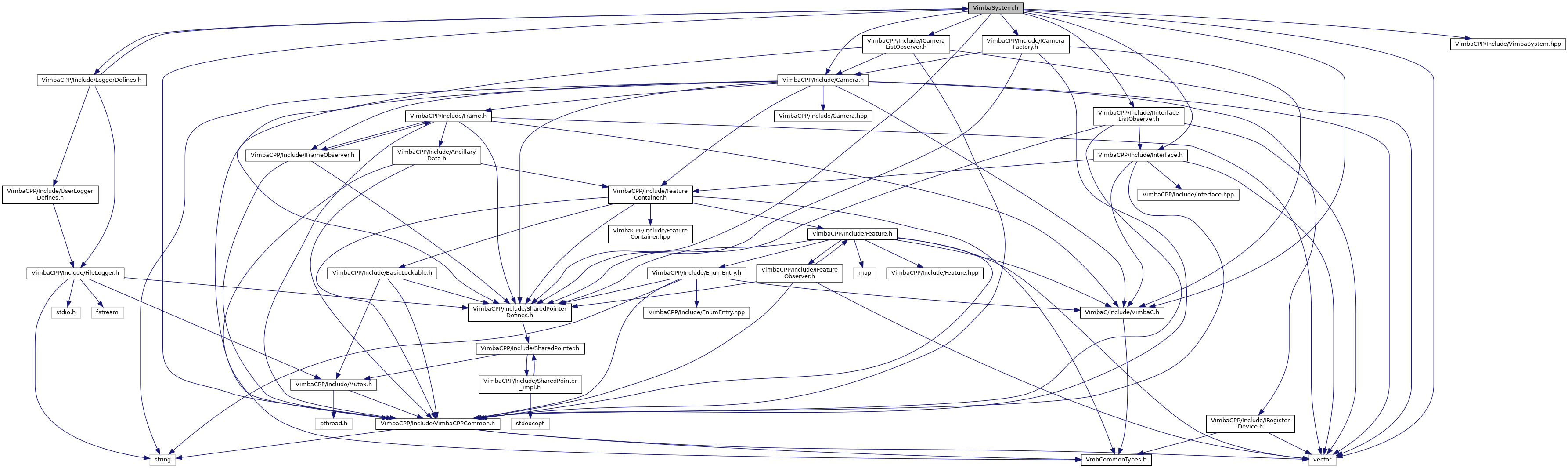 #include <vector>#include <VimbaC/Include/VimbaC.h>#include <VimbaCPP/Include/VimbaCPPCommon.h>#include <VimbaCPP/Include/LoggerDefines.h>#include <VimbaCPP/Include/SharedPointerDefines.h>#include <VimbaCPP/Include/Interface.h>#include <VimbaCPP/Include/Camera.h>#include <VimbaCPP/Include/ICameraFactory.h>#include <VimbaCPP/Include/ICameraListObserver.h>#include <VimbaCPP/Include/IInterfaceListObserver.h>#include <VimbaCPP/Include/VimbaSystem.hpp>
