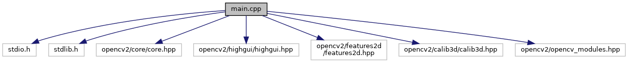 #include <stdio.h>#include <stdlib.h>#include <opencv2/core/core.hpp>#include <opencv2/highgui/highgui.hpp>#include <opencv2/features2d/features2d.hpp>#include <opencv2/calib3d/calib3d.hpp>#include <opencv2/opencv_modules.hpp>