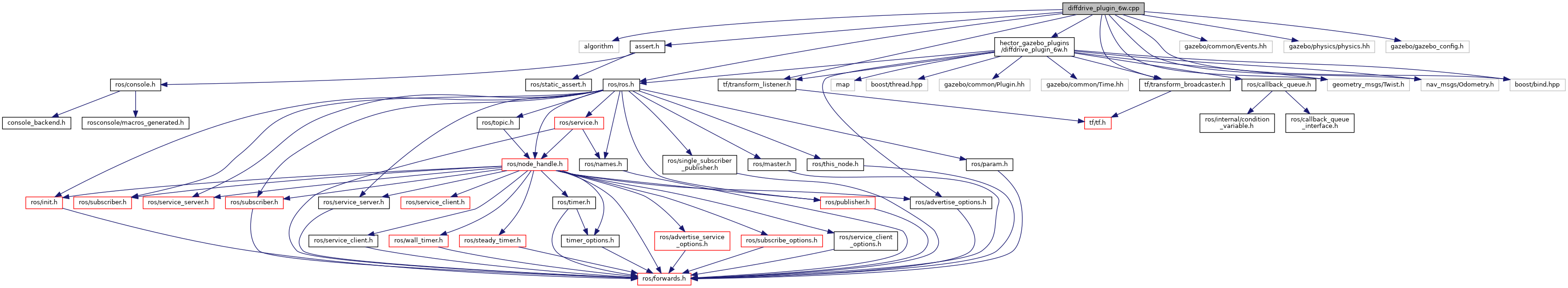 #include <algorithm>#include <assert.h>#include <hector_gazebo_plugins/diffdrive_plugin_6w.h>#include <gazebo/common/Events.hh>#include <gazebo/physics/physics.hh>#include <ros/ros.h>#include <tf/transform_broadcaster.h>#include <tf/transform_listener.h>#include <geometry_msgs/Twist.h>#include <nav_msgs/Odometry.h>#include <boost/bind.hpp>#include <gazebo/gazebo_config.h>