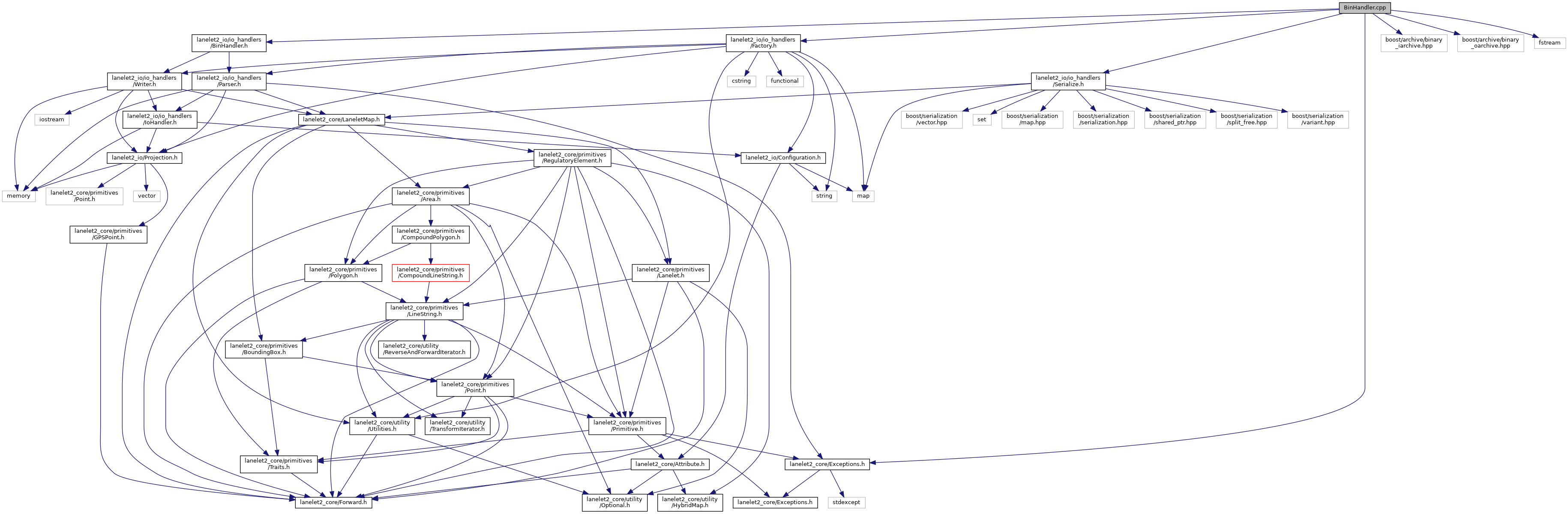 #include "lanelet2_io/io_handlers/BinHandler.h"#include <boost/archive/binary_iarchive.hpp>#include <boost/archive/binary_oarchive.hpp>#include <fstream>#include "lanelet2_io/Exceptions.h"#include "lanelet2_io/io_handlers/Factory.h"#include "lanelet2_io/io_handlers/Serialize.h"