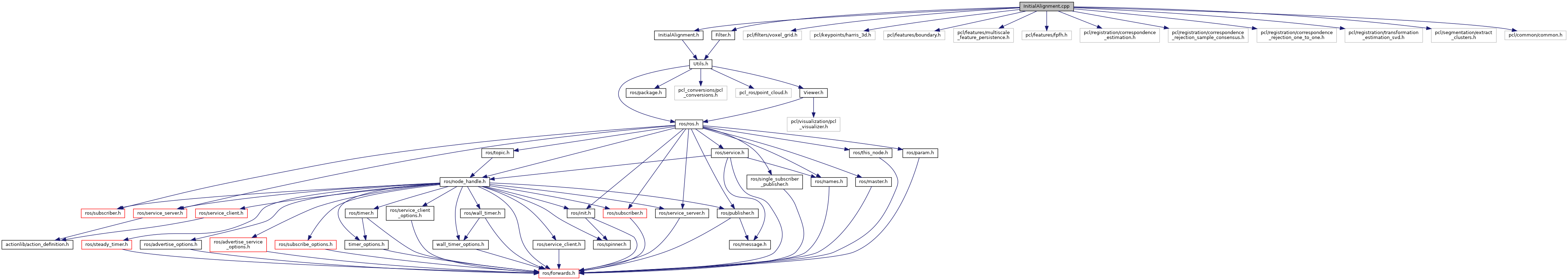 #include <InitialAlignment.h>#include <Filter.h>#include <pcl/filters/voxel_grid.h>#include <pcl/keypoints/harris_3d.h>#include <pcl/features/boundary.h>#include <pcl/features/multiscale_feature_persistence.h>#include <pcl/features/fpfh.h>#include <pcl/registration/correspondence_estimation.h>#include <pcl/registration/correspondence_rejection_sample_consensus.h>#include <pcl/registration/correspondence_rejection_one_to_one.h>#include <pcl/registration/transformation_estimation_svd.h>#include <pcl/segmentation/extract_clusters.h>#include <pcl/common/common.h>