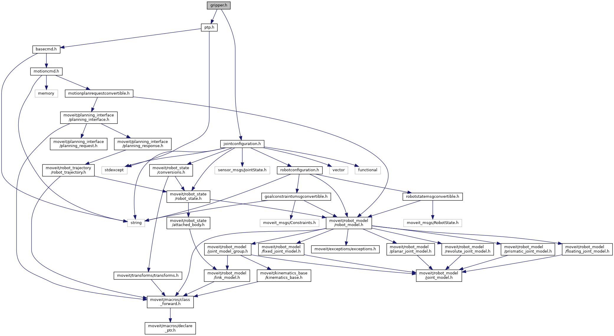 Include dependency graph for gripper.h:
