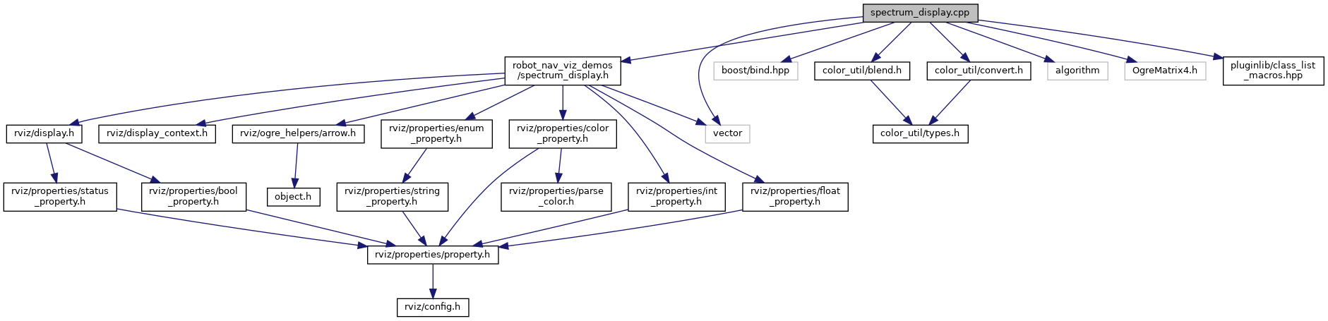 #include <robot_nav_viz_demos/spectrum_display.h>#include <boost/bind.hpp>#include <color_util/blend.h>#include <color_util/convert.h>#include <algorithm>#include <vector>#include <OgreMatrix4.h>#include <pluginlib/class_list_macros.hpp>