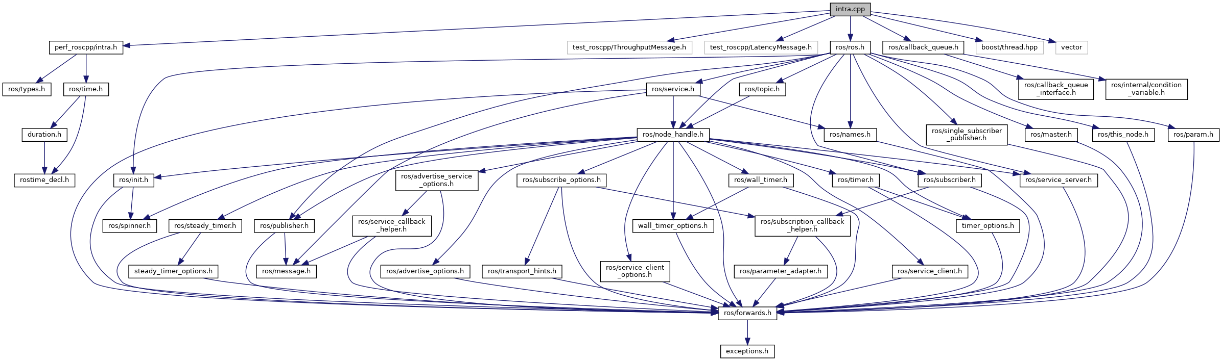 #include "perf_roscpp/intra.h"#include "test_roscpp/ThroughputMessage.h"#include "test_roscpp/LatencyMessage.h"#include <ros/ros.h>#include <ros/callback_queue.h>#include <boost/thread.hpp>#include <vector>