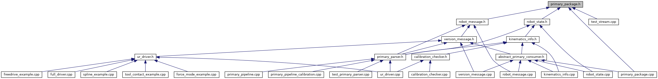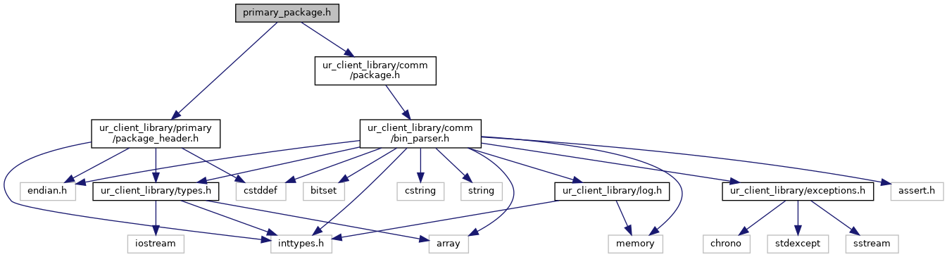 The PrimaryPackage is solely an abstraction level. It inherits form the URPackage and is also a parent class for primary_interface::RobotMessage, primary_interface::RobotState. More... | |