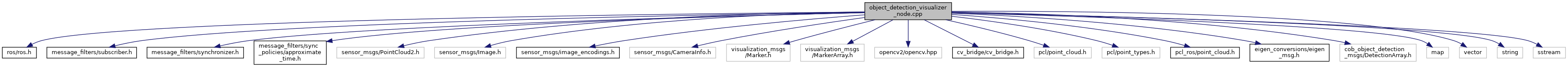 #include <ros/ros.h>#include <message_filters/subscriber.h>#include <message_filters/synchronizer.h>#include <message_filters/sync_policies/approximate_time.h>#include <sensor_msgs/PointCloud2.h>#include <sensor_msgs/Image.h>#include <sensor_msgs/image_encodings.h>#include <sensor_msgs/CameraInfo.h>#include <visualization_msgs/Marker.h>#include <visualization_msgs/MarkerArray.h>#include <opencv2/opencv.hpp>#include <cv_bridge/cv_bridge.h>#include <pcl/point_cloud.h>#include <pcl/point_types.h>#include <pcl_ros/point_cloud.h>#include <eigen_conversions/eigen_msg.h>#include <cob_object_detection_msgs/DetectionArray.h>#include <map>#include <vector>#include <string>#include <sstream>