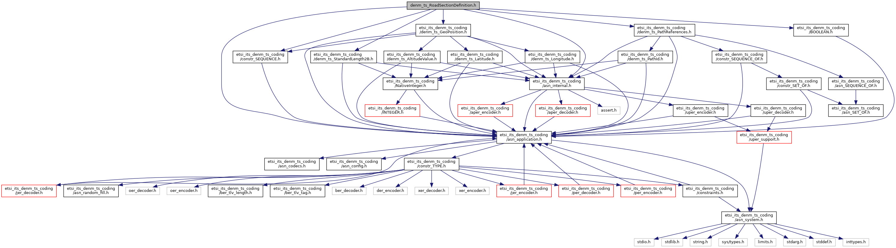 Include dependency graph for denm_ts_RoadSectionDefinition.h:
