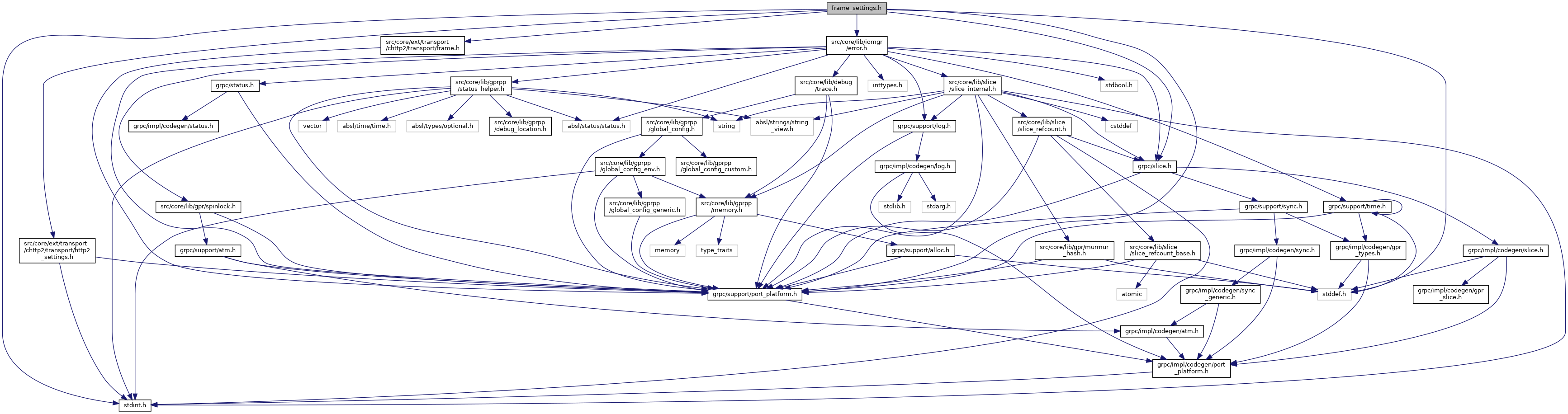 Include dependency graph for frame_settings.h: