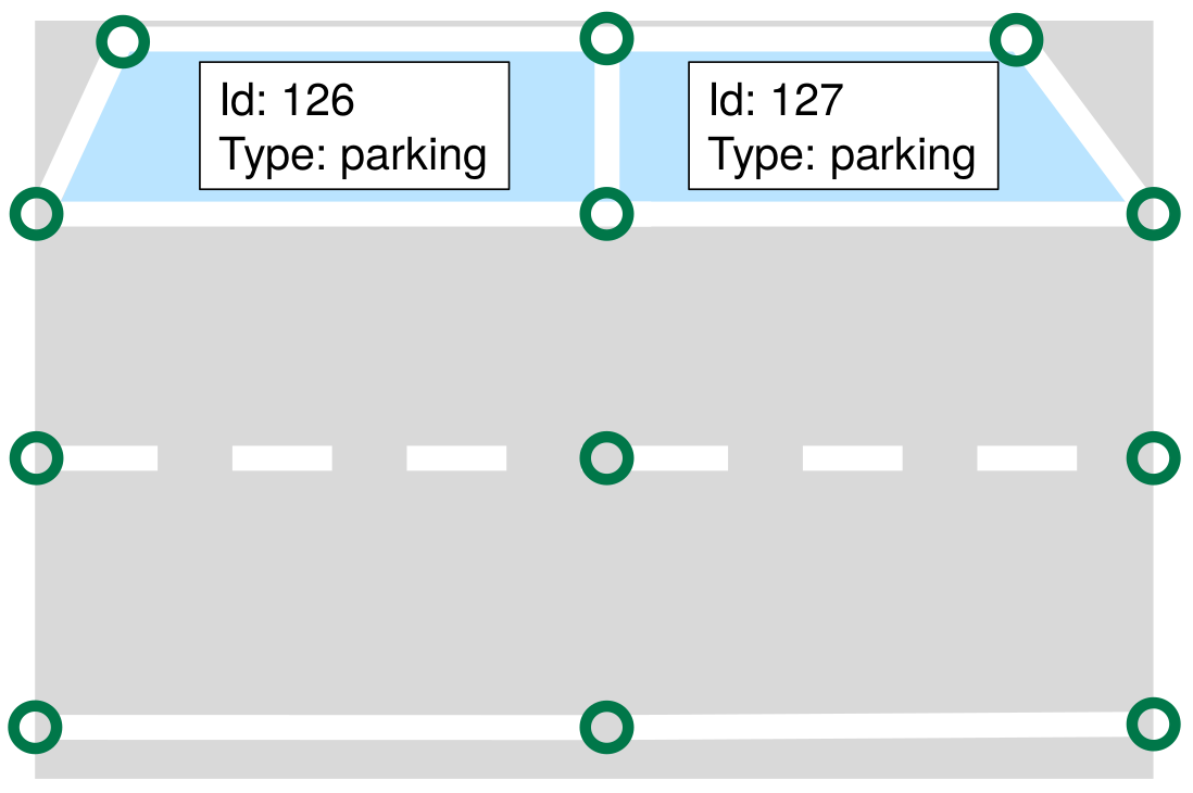 Similarly to Lanelets, Areas can refer to regulatory elements. Furthermore, it must be possible to determine the purpose of the Area as well as by which participants it is usable.
