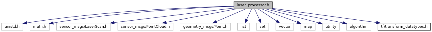 #include <unistd.h>#include <math.h>#include <sensor_msgs/LaserScan.h>#include <sensor_msgs/PointCloud.h>#include <geometry_msgs/Point.h>#include <list>#include <set>#include <vector>#include <map>#include <utility>#include <algorithm>#include <tf/transform_datatypes.h>