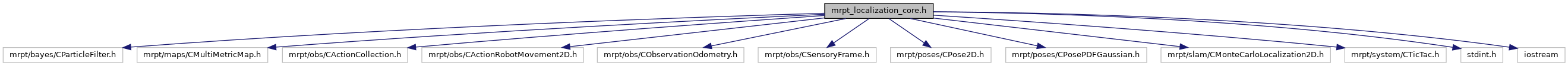 #include <mrpt/bayes/CParticleFilter.h>#include <mrpt/maps/CMultiMetricMap.h>#include <mrpt/obs/CActionCollection.h>#include <mrpt/obs/CActionRobotMovement2D.h>#include <mrpt/obs/CObservationOdometry.h>#include <mrpt/obs/CSensoryFrame.h>#include <mrpt/poses/CPose2D.h>#include <mrpt/poses/CPosePDFGaussian.h>#include <mrpt/slam/CMonteCarloLocalization2D.h>#include <mrpt/system/CTicTac.h>#include <stdint.h>#include <iostream>