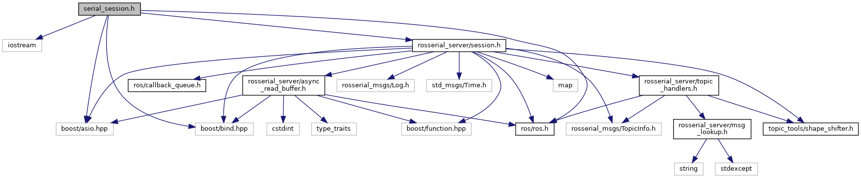#include <iostream>#include <boost/bind.hpp>#include <boost/asio.hpp>#include <ros/ros.h>#include "rosserial_server/session.h"