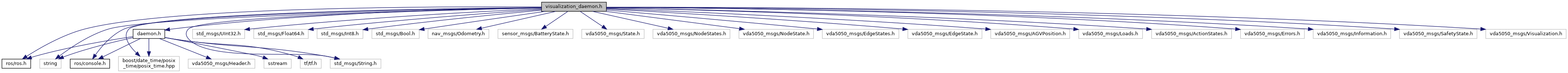 #include <ros/ros.h>#include <string>#include <ros/console.h>#include <std_msgs/UInt32.h>#include <std_msgs/Float64.h>#include <std_msgs/Int8.h>#include <std_msgs/Bool.h>#include <nav_msgs/Odometry.h>#include <sensor_msgs/BatteryState.h>#include "daemon.h"#include "std_msgs/String.h"#include "boost/date_time/posix_time/posix_time.hpp"#include "vda5050_msgs/State.h"#include "vda5050_msgs/NodeStates.h"#include "vda5050_msgs/NodeState.h"#include "vda5050_msgs/EdgeStates.h"#include "vda5050_msgs/EdgeState.h"#include "vda5050_msgs/AGVPosition.h"#include "vda5050_msgs/Loads.h"#include "vda5050_msgs/ActionStates.h"#include "vda5050_msgs/Errors.h"#include "vda5050_msgs/Information.h"#include "vda5050_msgs/SafetyState.h"#include "vda5050_msgs/Visualization.h"