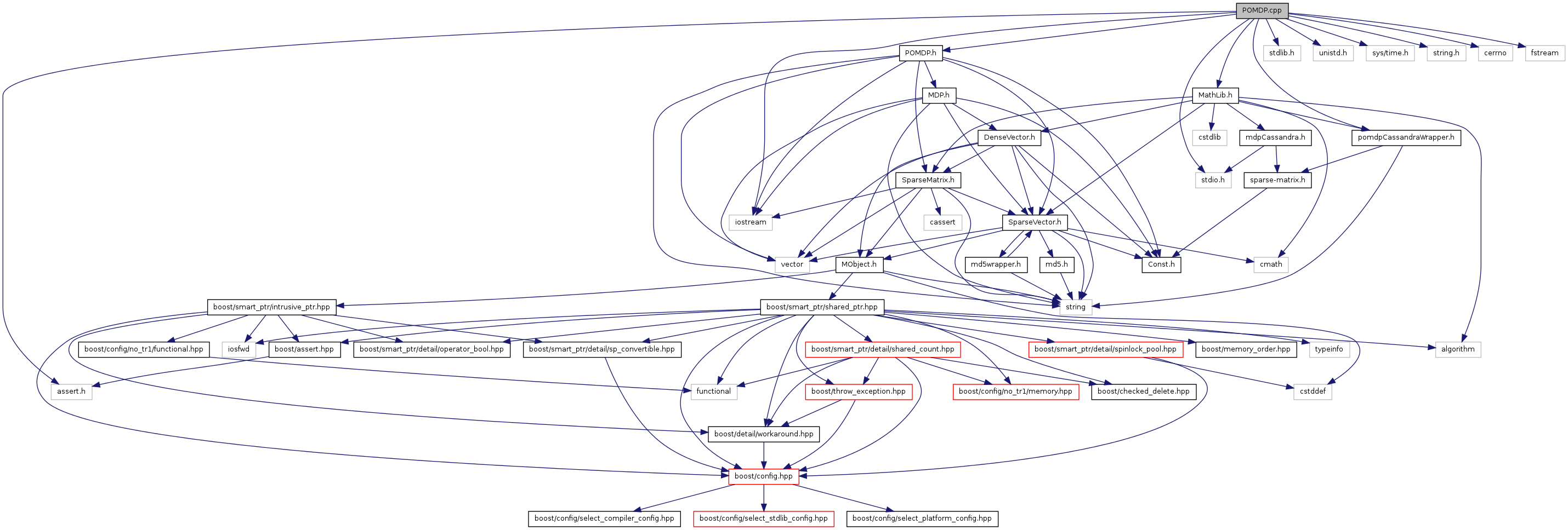 #include <assert.h>#include <stdlib.h>#include <unistd.h>#include <sys/time.h>#include <stdio.h>#include <string.h>#include <iostream>#include <cerrno>#include <fstream>#include "pomdpCassandraWrapper.h"#include "POMDP.h"#include "MathLib.h"
