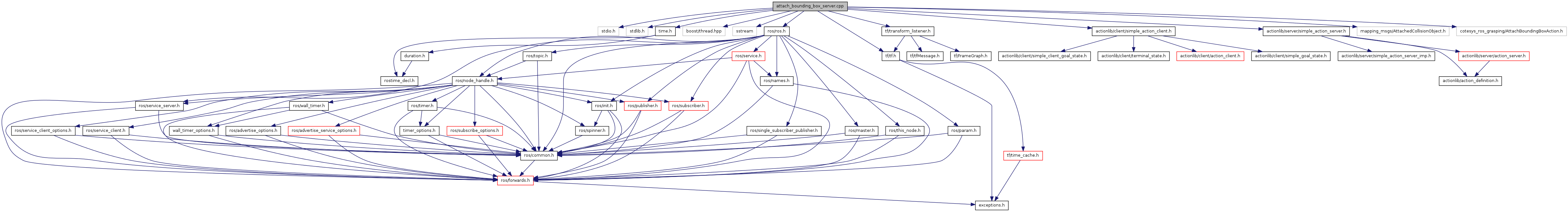 #include <stdio.h>#include <stdlib.h>#include <time.h>#include <boost/thread.hpp>#include <sstream>#include <ros/ros.h>#include <tf/tf.h>#include <tf/transform_listener.h>#include <actionlib/client/simple_action_client.h>#include <actionlib/server/simple_action_server.h>#include <mapping_msgs/AttachedCollisionObject.h>#include <cotesys_ros_grasping/AttachBoundingBoxAction.h>