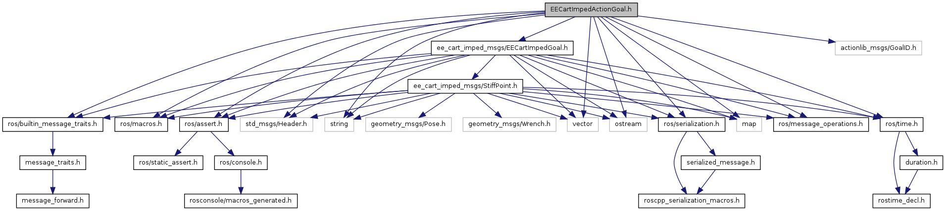 #include <string>#include <vector>#include <map>#include <ostream>#include "ros/serialization.h"#include "ros/builtin_message_traits.h"#include "ros/message_operations.h"#include "ros/time.h"#include "ros/macros.h"#include "ros/assert.h"#include "std_msgs/Header.h"#include "actionlib_msgs/GoalID.h"#include "ee_cart_imped_msgs/EECartImpedGoal.h"