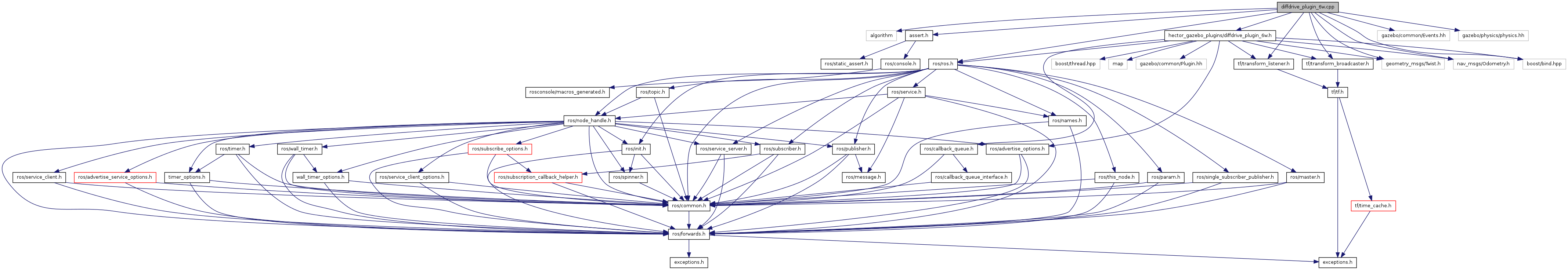 #include <algorithm>#include <assert.h>#include <hector_gazebo_plugins/diffdrive_plugin_6w.h>#include <gazebo/common/Events.hh>#include <gazebo/physics/physics.hh>#include <ros/ros.h>#include <tf/transform_broadcaster.h>#include <tf/transform_listener.h>#include <geometry_msgs/Twist.h>#include <nav_msgs/Odometry.h>#include <boost/bind.hpp>