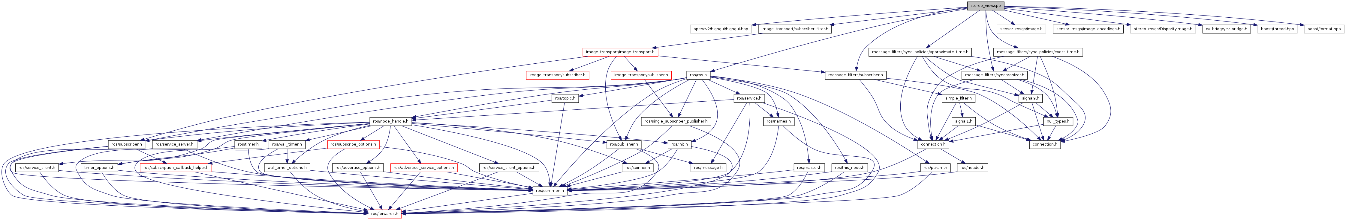#include <opencv2/highgui/highgui.hpp>#include <ros/ros.h>#include <sensor_msgs/Image.h>#include <sensor_msgs/image_encodings.h>#include <stereo_msgs/DisparityImage.h>#include <cv_bridge/cv_bridge.h>#include <message_filters/subscriber.h>#include <message_filters/synchronizer.h>#include <message_filters/sync_policies/exact_time.h>#include <message_filters/sync_policies/approximate_time.h>#include <image_transport/subscriber_filter.h>#include <boost/thread.hpp>#include <boost/format.hpp>