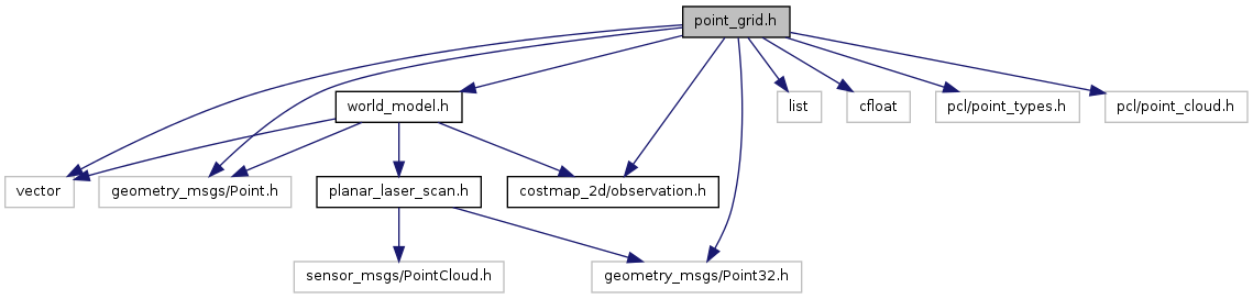 #include <vector>#include <list>#include <cfloat>#include <geometry_msgs/Point.h>#include <geometry_msgs/Point32.h>#include <costmap_2d/observation.h>#include <world_model.h>#include <pcl/point_types.h>#include <pcl/point_cloud.h>